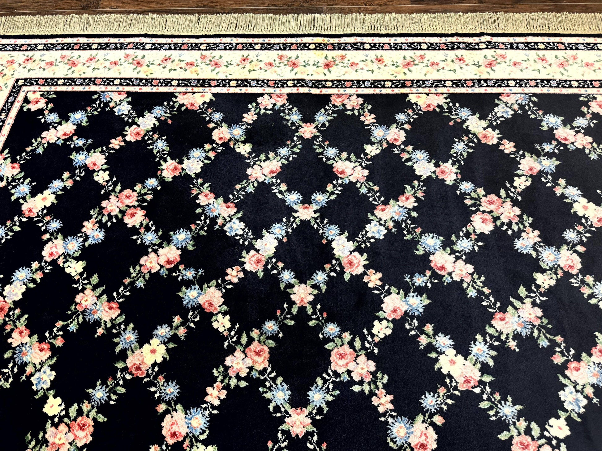Karastan Rug 8.8 x 12, Garden of Eden #509/1270, Ebony Trellis, Vintage Discontinued Wool Pile Karastan Carpet