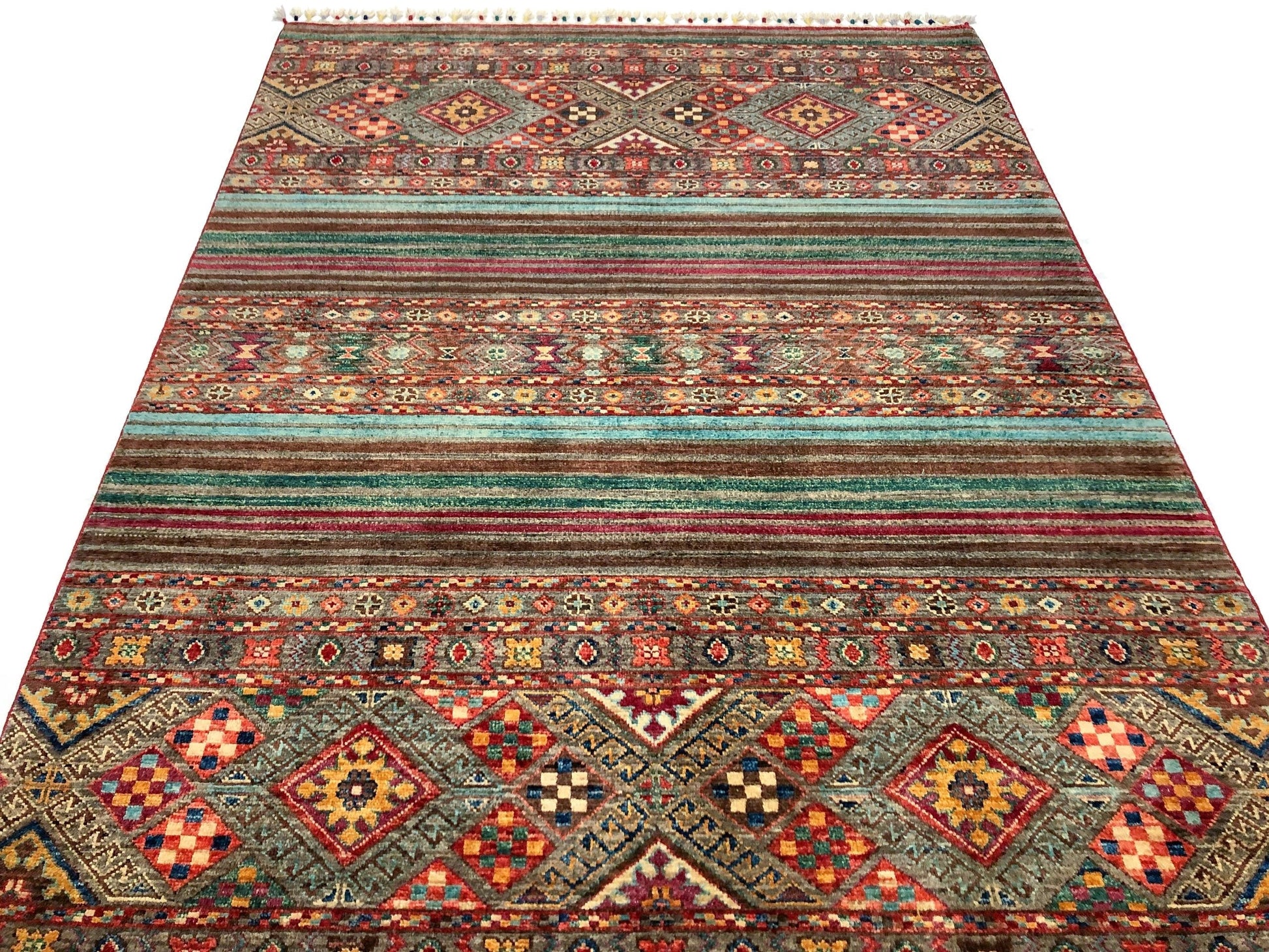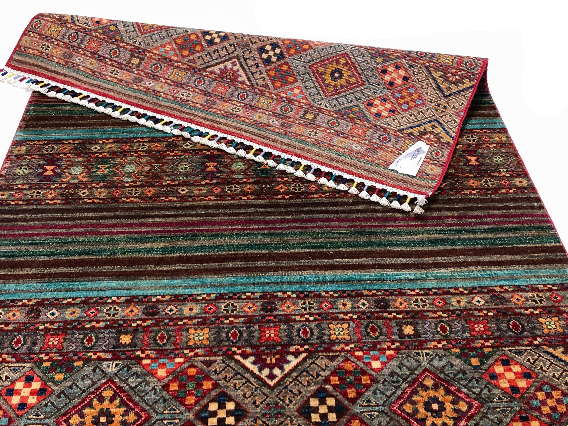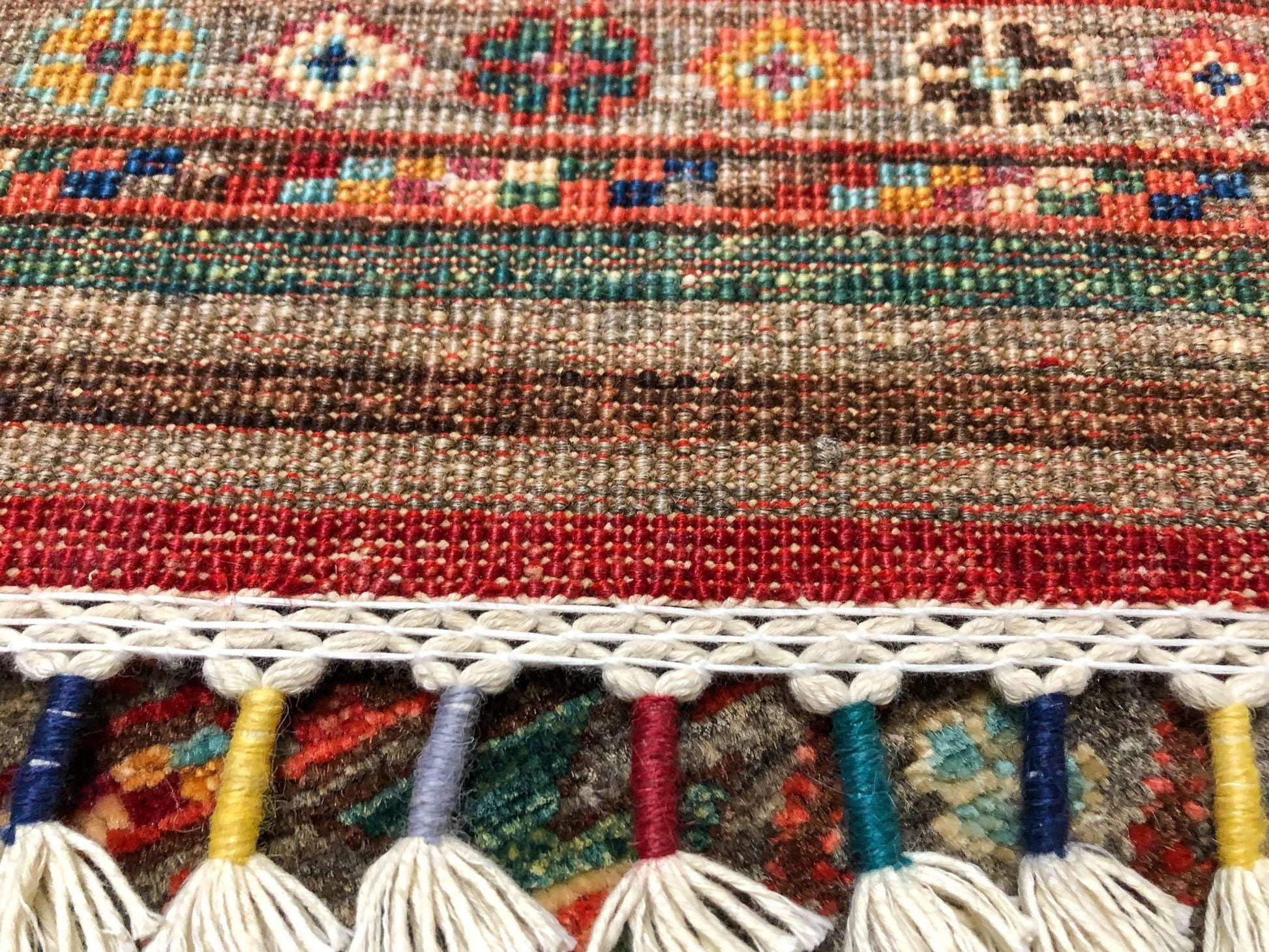 Horizontal Khorjin (Khurjeen) design – hand-knotted of hand-spun, vegetable-dyed Ghazni wool in Afghanistan; exported from Pakistan