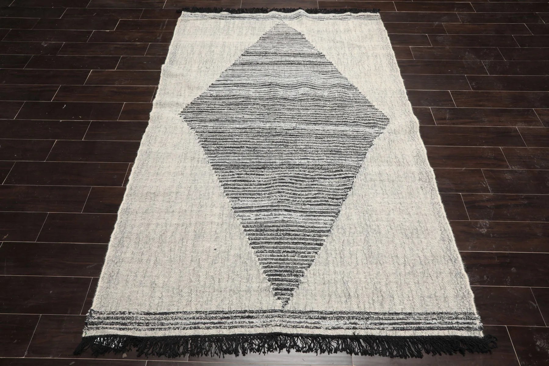Enliven your home decor with the addition of a handwoven flatweave rug from India that brings texture and glamour in equal measure. The captivating southwestern geometric design adds a touch of finesse and style to any room, making it a worthwhile investment at its price.