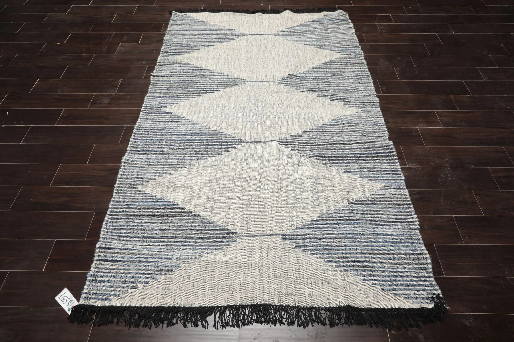 Elevate your home decor with this handwoven flatweave rug from India, known for its impressive texture and captivating southwestern geometric pattern that adds a touch of glamor to any room. At such an affordable price, it's a true gem to have in your home.