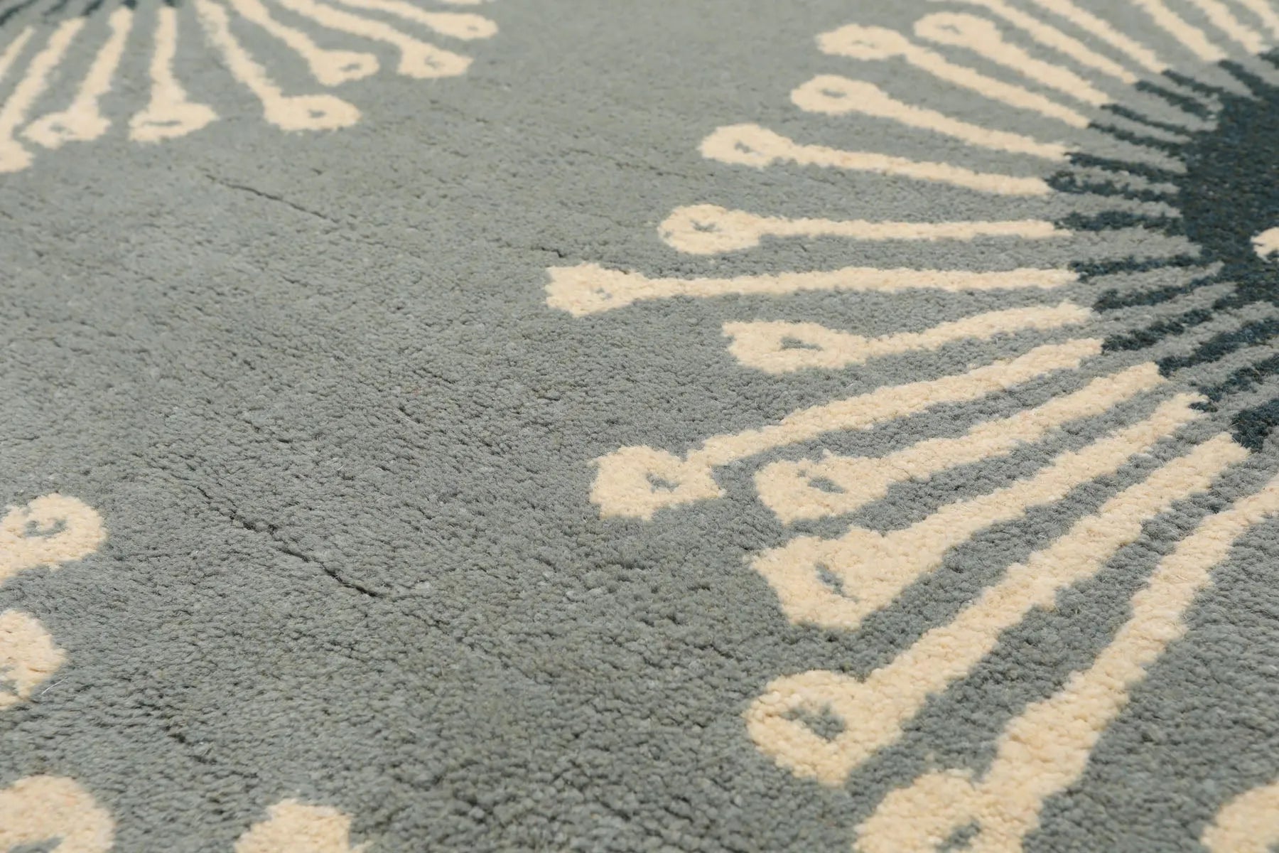 Story Behind the Art: What are Hand Tufted Rugs? Hand Tufted rugs, comparatively, are of newer origins. Hand Tufted rugs are created by pulling loops of yarns through a canvas that forms the rug foundation. The canvas, stretched on a loom, has a design outline that must be filled in. Once complete and off the loom, the loops are cut to create a smooth pile and a second backing is attached to hold the yarns in place.