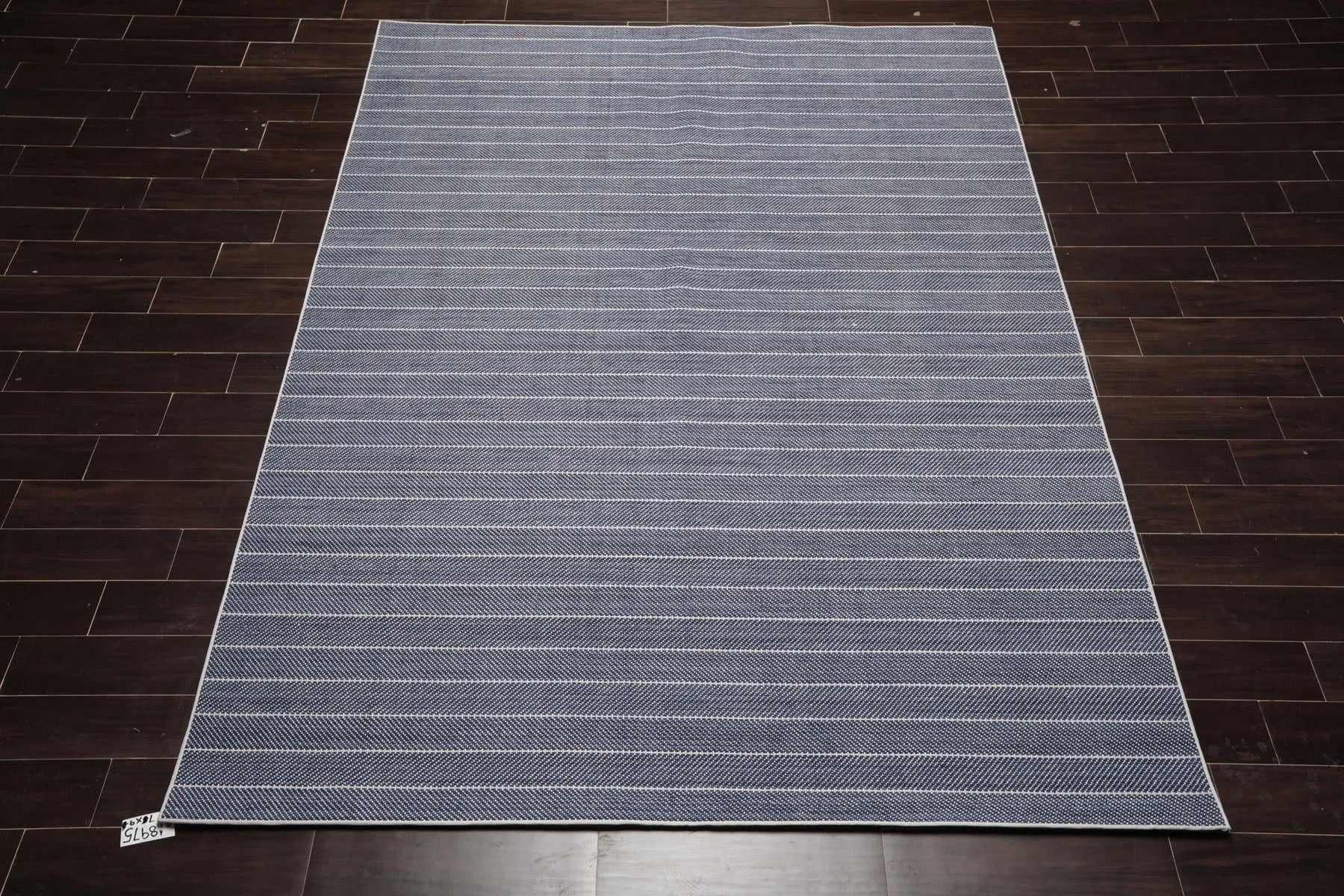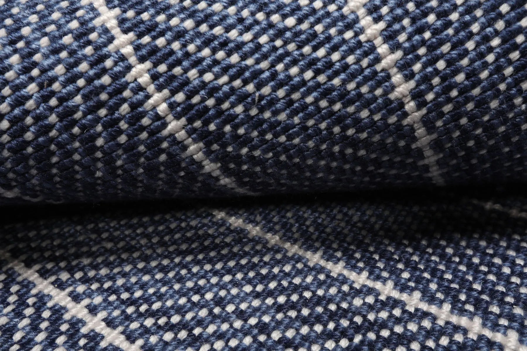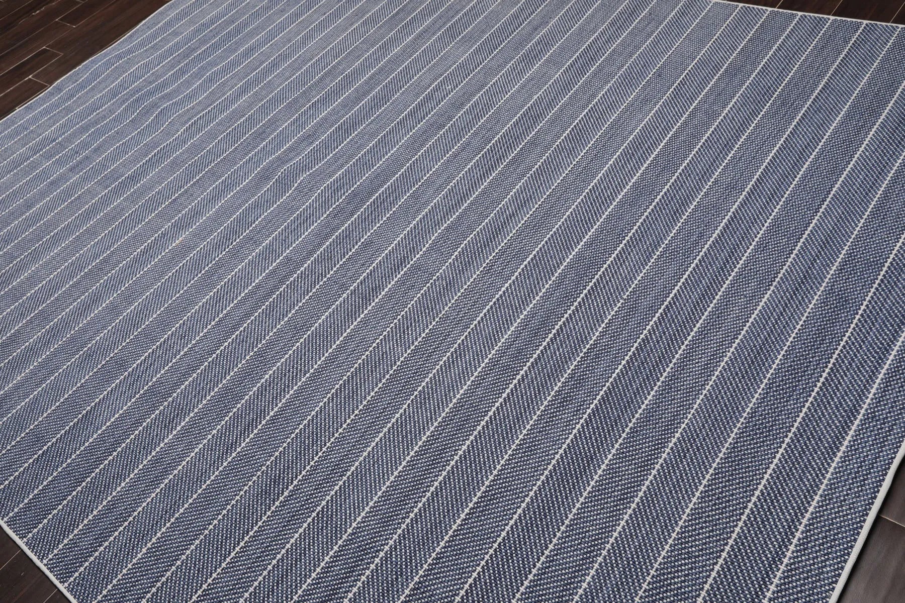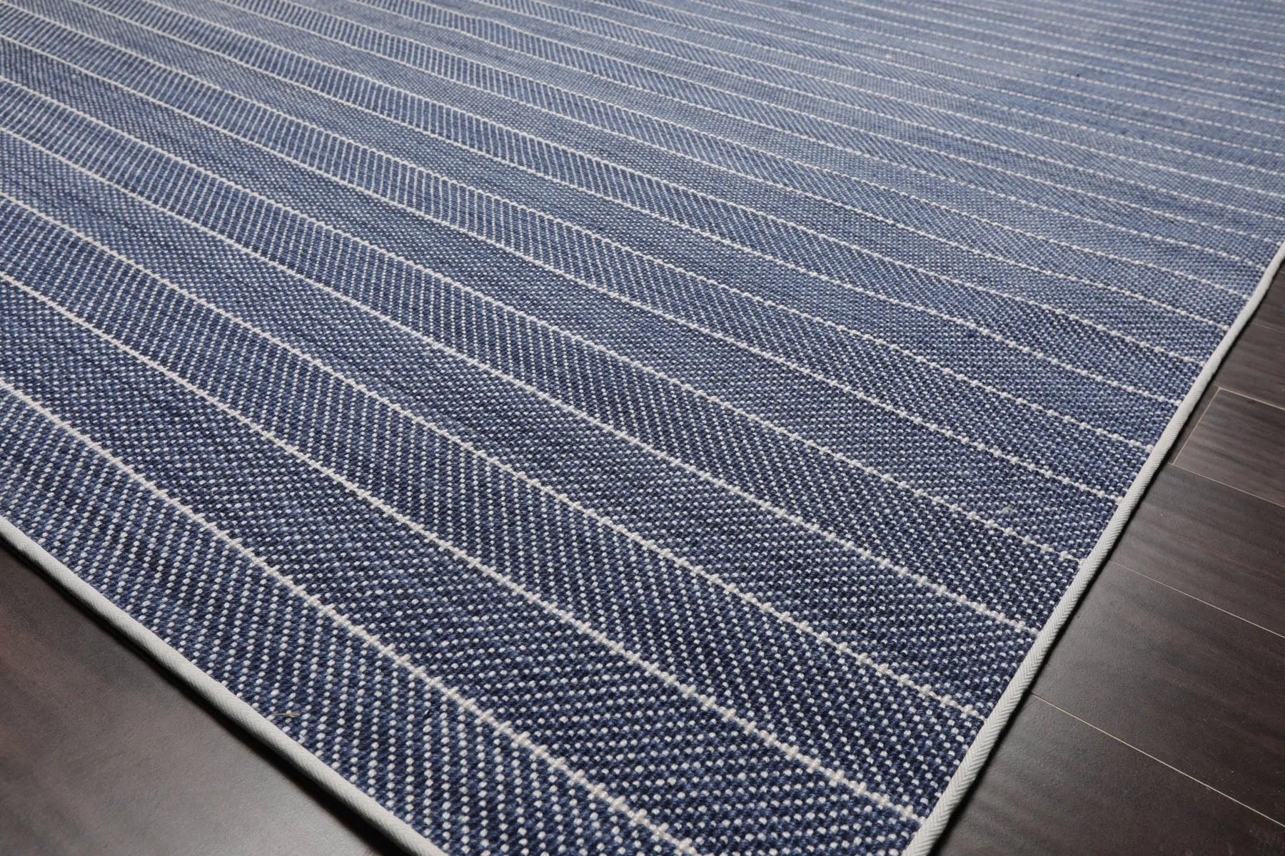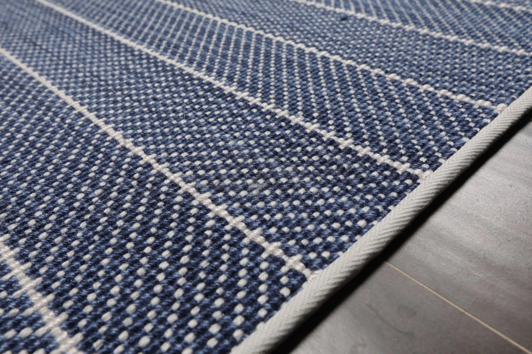 LoomBloom Multi Size Navy Hand Woven Contemporary Herringbone Flatweave New Zealand Wool Oriental Area Rug