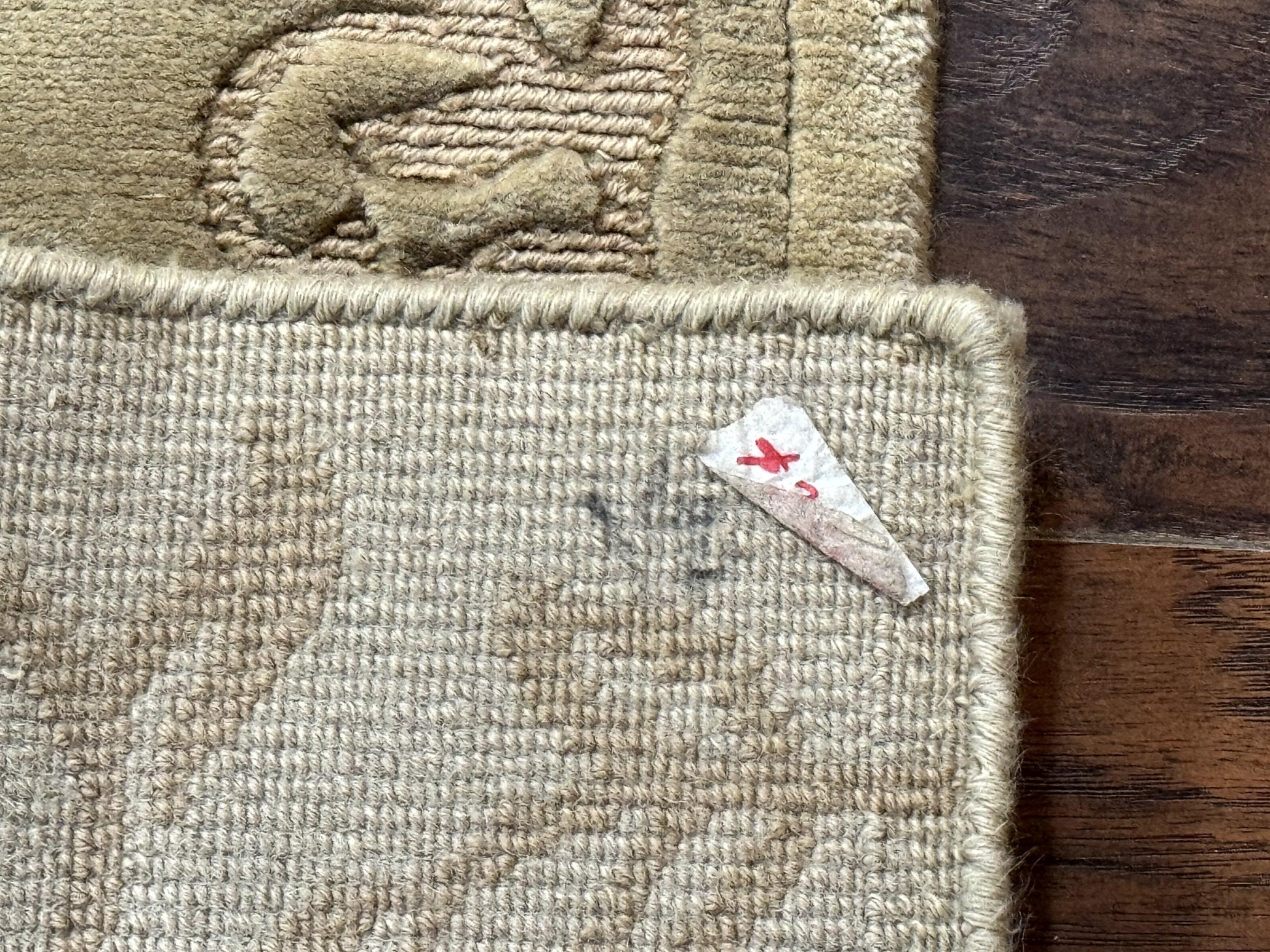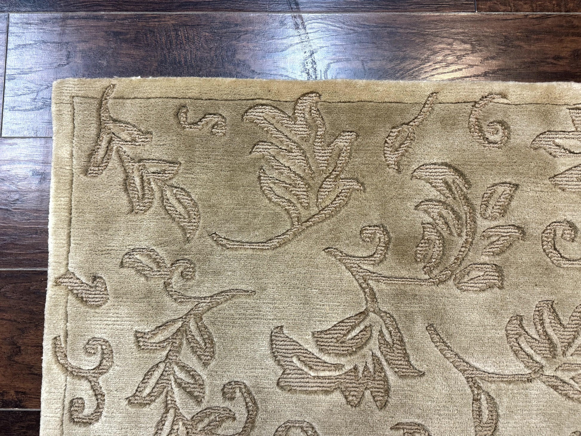 Modern Tibetan Rug 3.7 x 5.5, Carved Floral Design, Wool and Silk Highlights