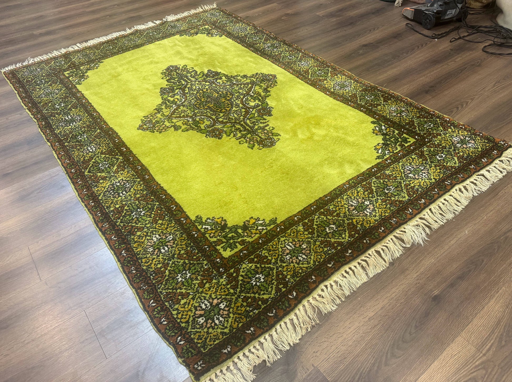 Moroccan Rug 6x8, Semi Open Field, Vintage, Lime Green, Wool Carpet