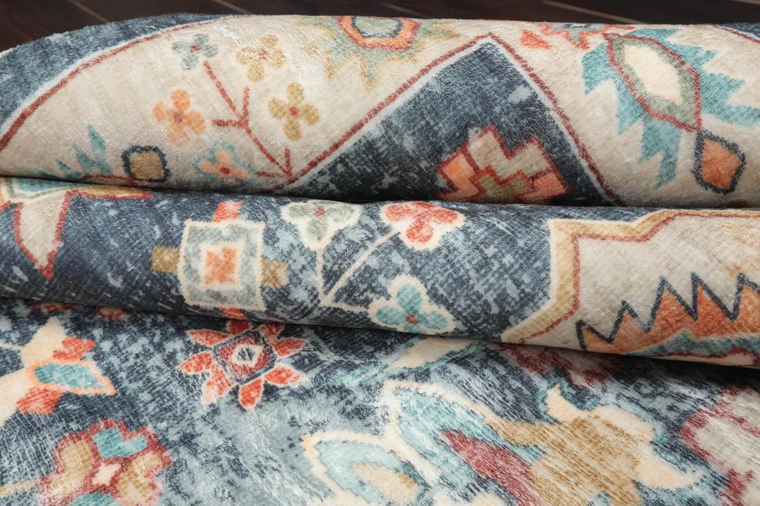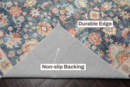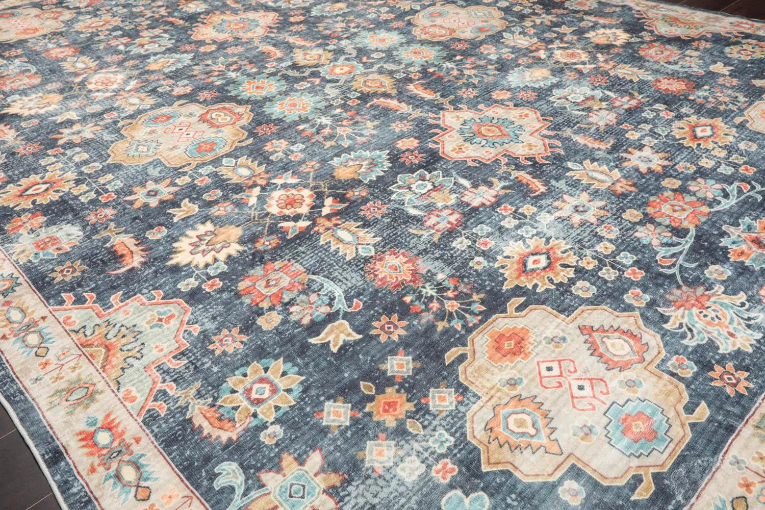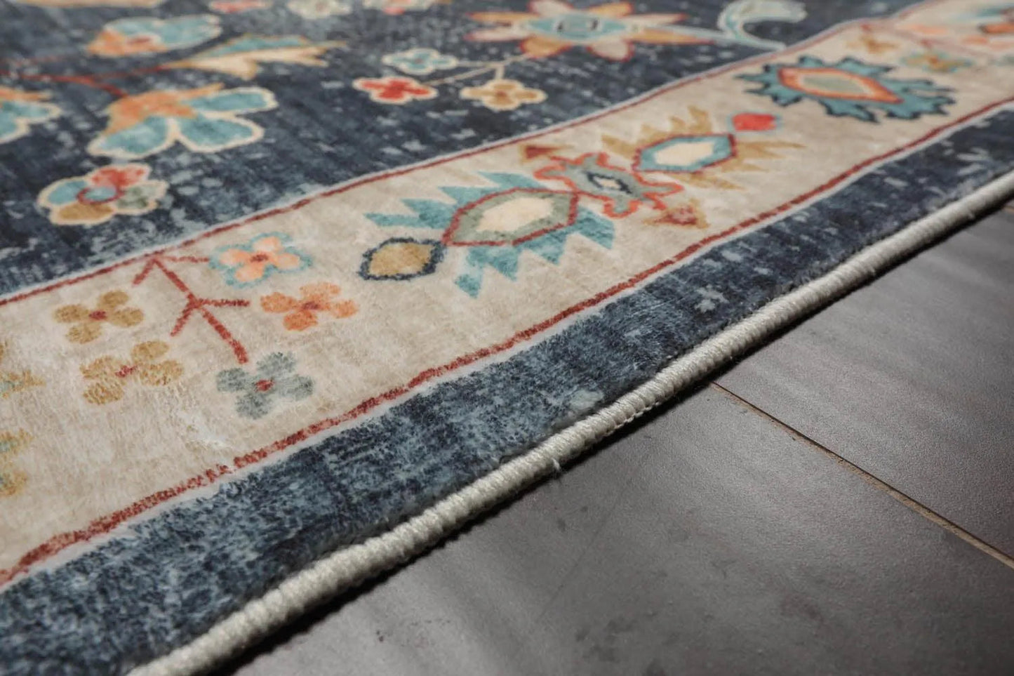 Multi Size Navy Machine Made Traditional washable Polyester Oriental Area Rug