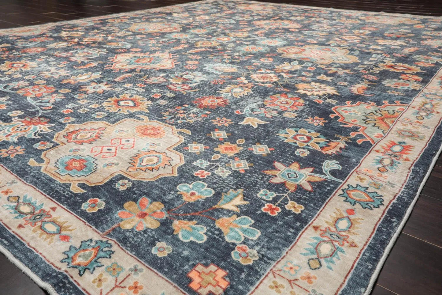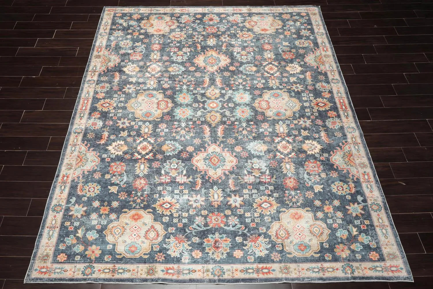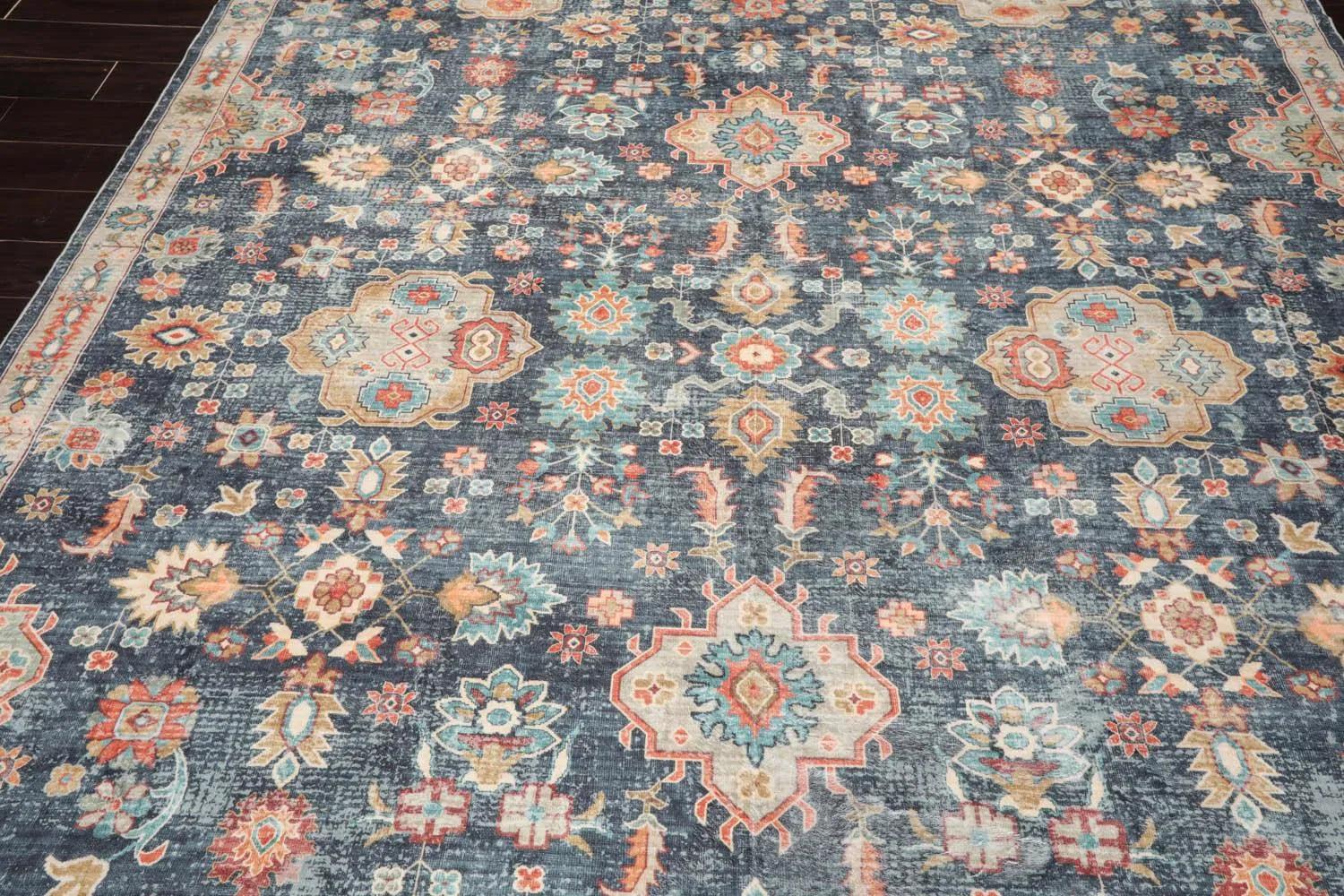 Multi Size Navy Machine Made Traditional washable Polyester Oriental Area Rug