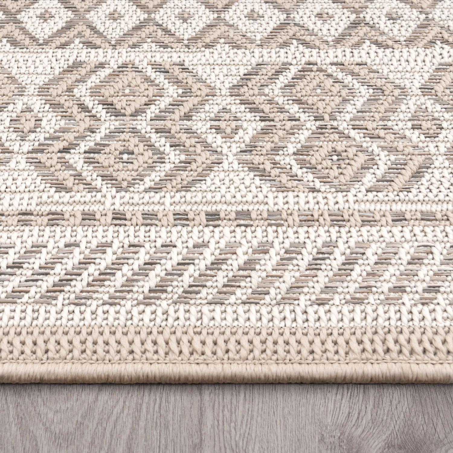 Outdoor Rug for Patio or Balcony Modern flatweave Boho ornaments in Cream Beige