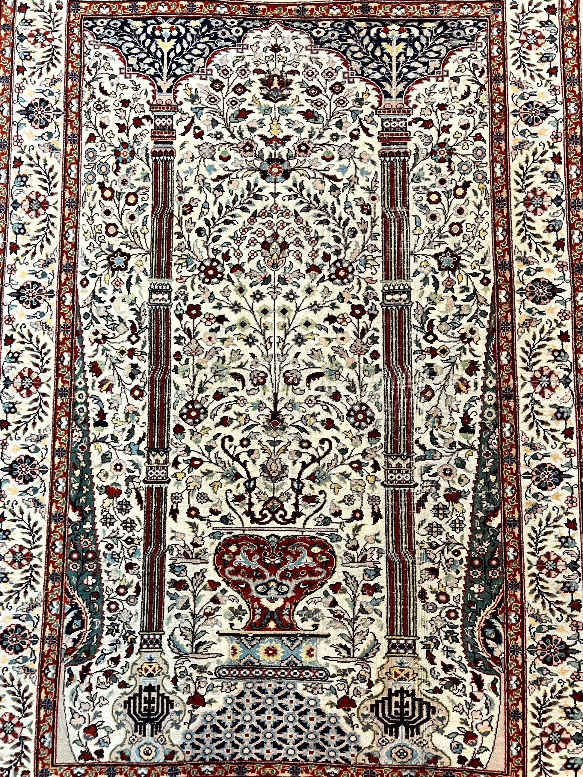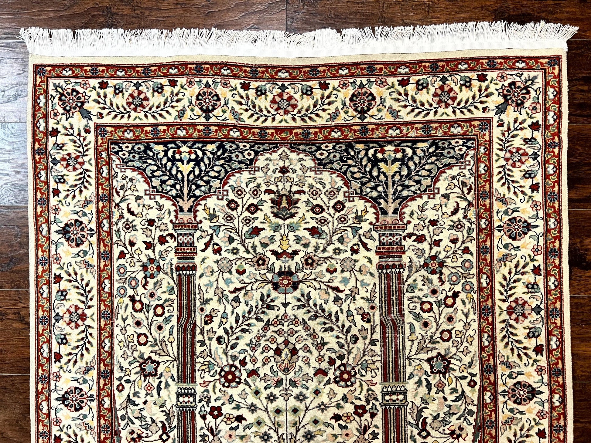 Pak Perisan Prayer Rug 4x6, Tree of LIfe Carpet, Handmade Vintage Wool Rug, Beige, Floral Vases