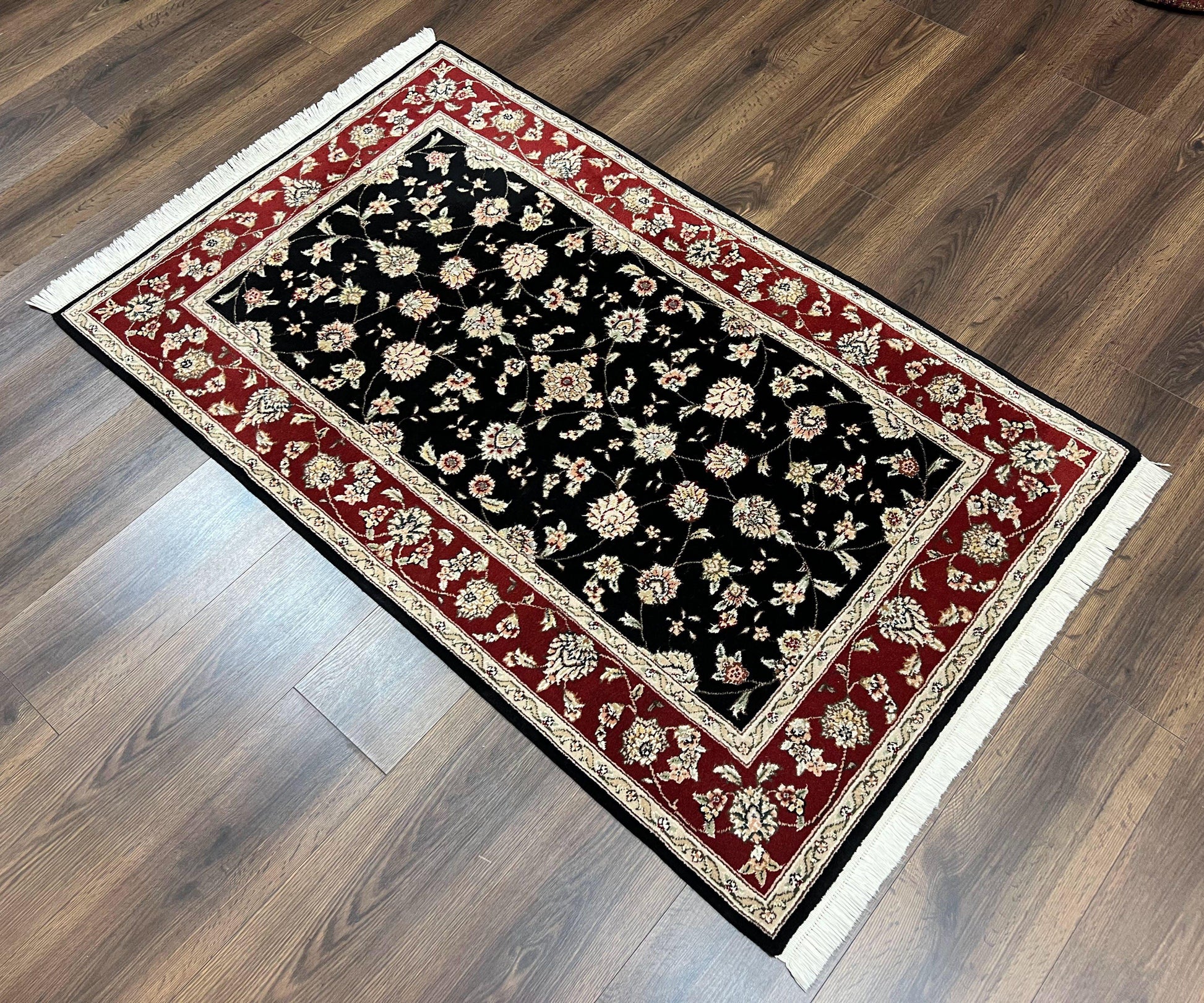 Pak Persian Rug 3x5, Black and Red, Floral Allover, Vintage Hand Knotted Wool Oriental Carpet, Pakistani Rug, Small Handmade Area Rug 3 x 5
