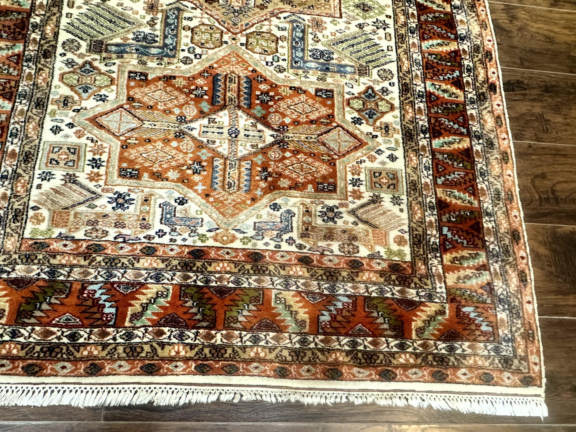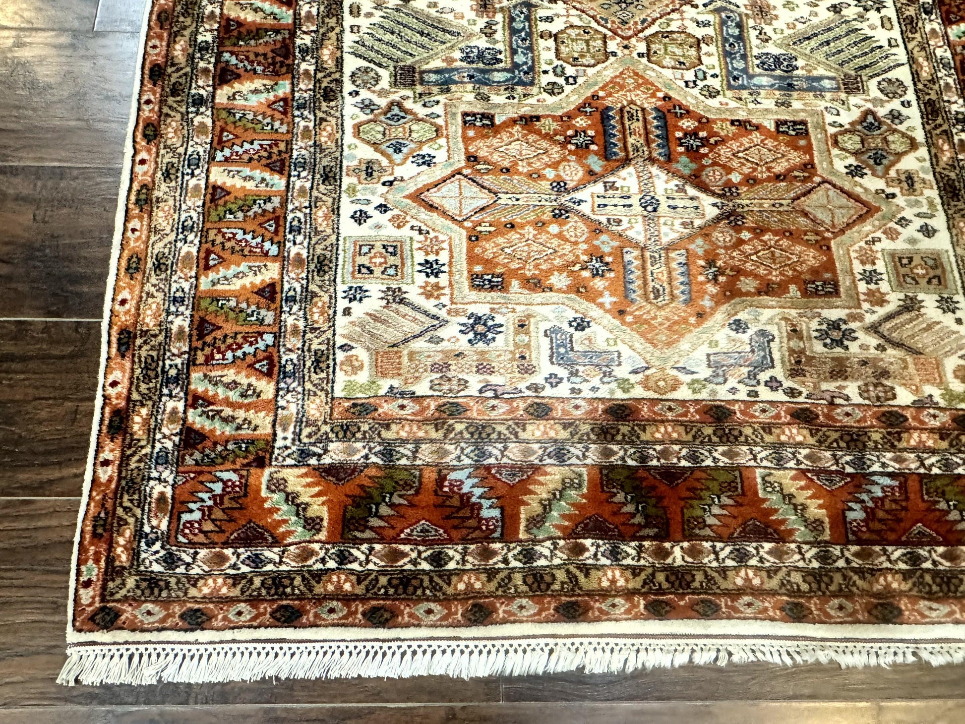 Turkish Kazak Rug 4x6, Geometric Medallions, Vintage Handmade Wool Carpet