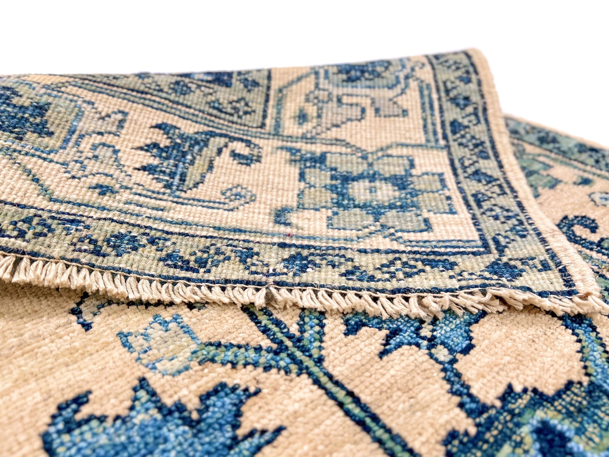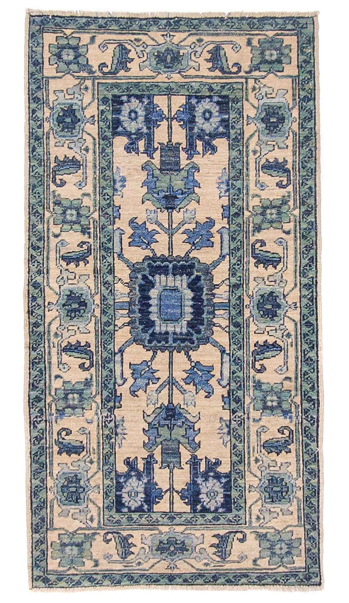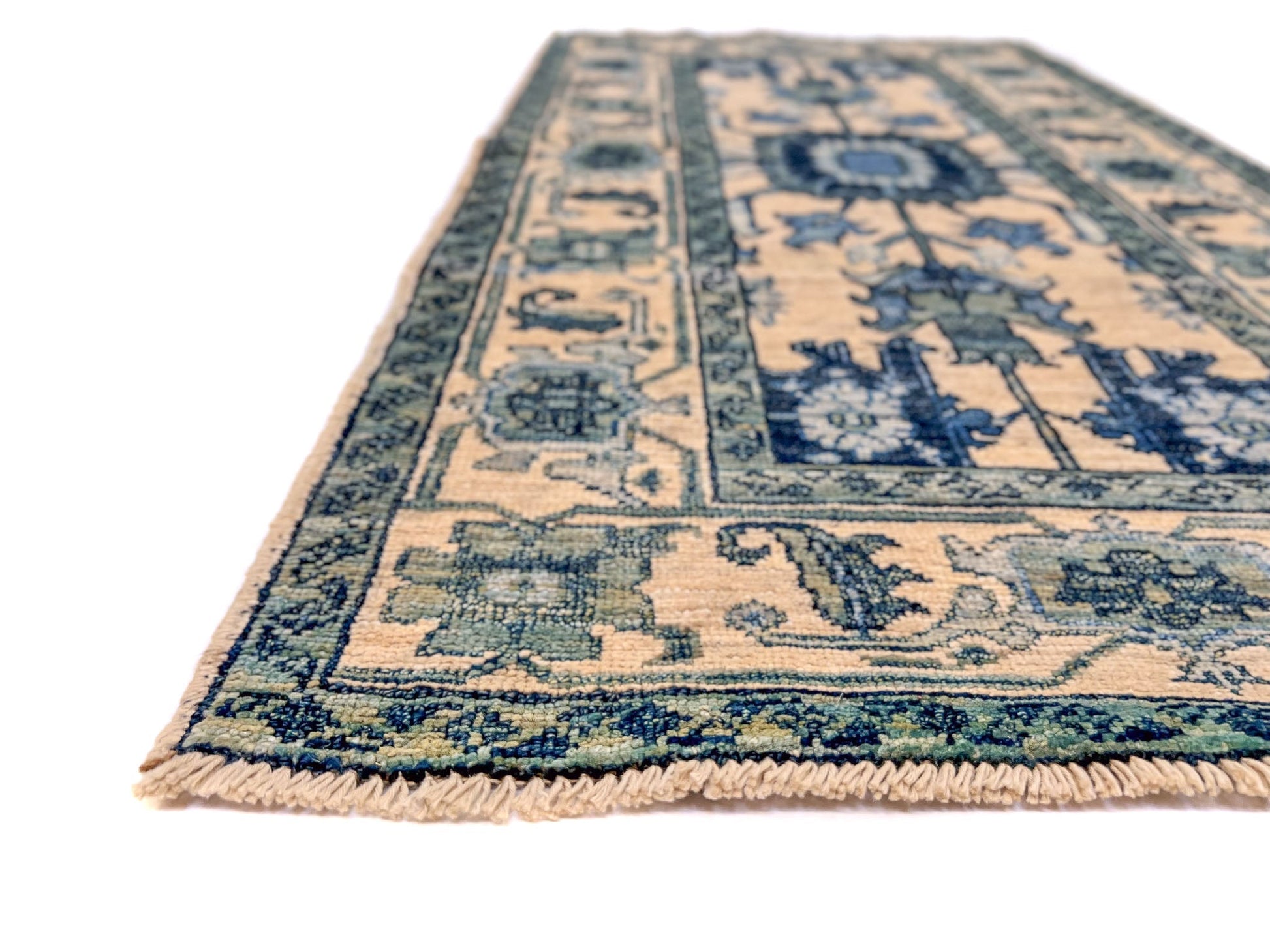 A new classic – modernized Afghan interpretation of a century-old, antique Persian Heriz design – hand-knotted of hand-spun, vegetable-dyed Ghazni wool – antique-washed and exported from Afghanistan