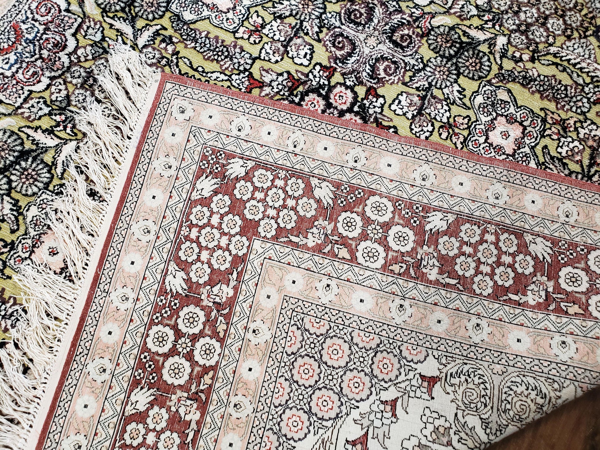 A Stunning & Intricate Vintage Handmade Hand-Knotted Silk, Gold Threads Luxury Area Rug. A great way to transform any space.