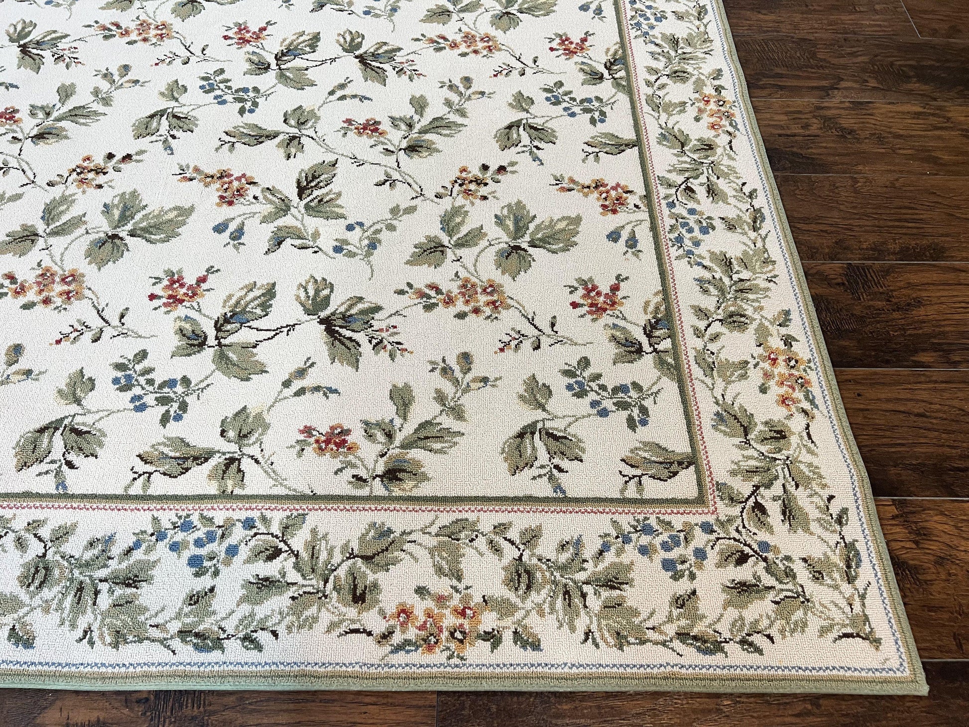 Vintage Stark Carpet 7x10, Ivory and Green, European Aubusson Design, Allover Pattern, Stark Rug