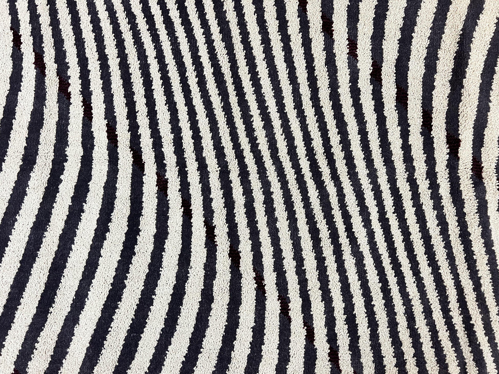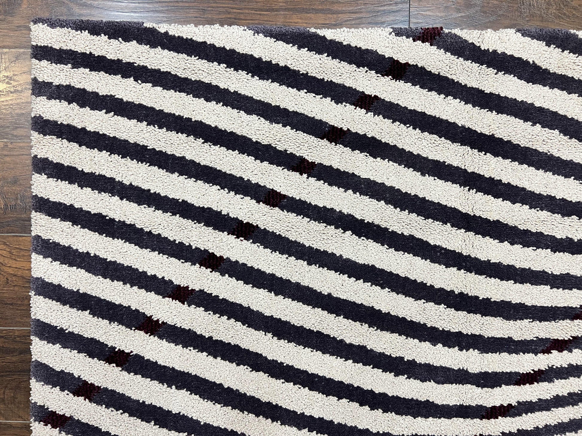 Vintage Zebra Stripes Shag Rug 5.7 x 7.4, Black and White, Retro, Wool