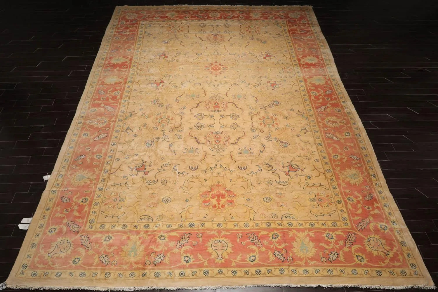Vintage Zeigler Palace Hand Knotted 100% Wool Area Rug Beige 13'9'' x 18'9''